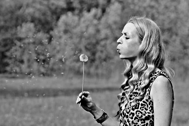 Keywords: dandelion woman flower blonde girl nice field wind blow