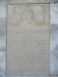 Keywords: Daniel McKay obelisk panel - South Boston, MA - DSC00747.JPG Donald McKay obelisk Castle Island Boston Massachusetts USA Designed by William T Aldrich; portrait medallion by Philip Sears I took this photograph 2011-07-17 13 09 23 Daderot Public domain Donald McKay obelisk |