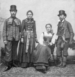 Keywords: DANISH COSTUMES1911.jpg På Amager bevarede man folkedragten højt op tiden fordi det var grønhandlernes uniform Dels fordi folk talte en slags Hollandsk indbyrdes On the island of Amager preserved If people dress up high time because that was a greengrocer's uniform Partly because the people spoke a sort of Dutch themselves From Woman Of All Nations 1911 page 743 1911 PD-Art PD-old-100 People of Denmark Top hats in black and white photographs National costumes of Denmark People_of_Dutch_descent Four people |