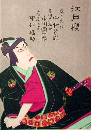 | Keywords: Danjuro Ichikawa IX as Sukeroku.jpg ja 代目市 十郎の花 戸助六 豐原 周 画 江戸櫻 大判錦繪(明治二十 年五 京歌舞伎座上演) <br /> en Danjūrō Ichikawa IX as Sukeroku in May 1896 production of Edozakura at Tokyo Kabukiza portrayed by Kunichika Toyohara http //hansichi hp infoseek co jp/pics/suke600 jpg 明治二十 年五 / May 1896 Creator Kunichika Toyohara PD-old-100 <gallery> Image Sukeroku Yukarino Edozakura by Kunichika jpg Full version</gallery> Danjūrō Ichikawa IX Ukiyo-e of Sukeroku Kunichika Toyohara Hachimaki in art | ||||
