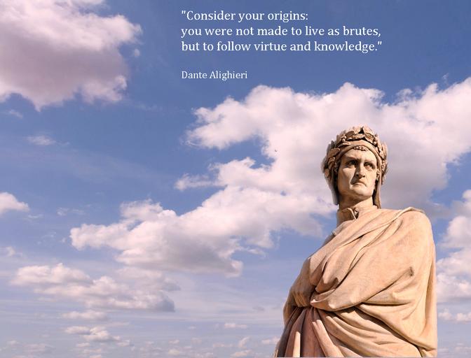 Keywords: dante alighieri dantealighieri sky clouds quotation writer poet italian virtue knowledge statue origin words text outdoor "Consider your origins: you were not made to live as brutes, but to follow virtue and knowledge." Dante Alighieri "Consider your origins: you were not made to live as brutes, but to follow virtue and knowledge." Dante Alighieri |