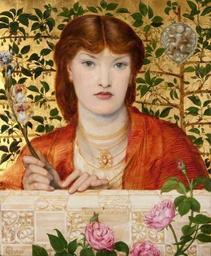 Keywords: Dante Gabriel Rossetti - Regina Cordium (1866).jpg Artwork Creator Dante Gabriel Rossetti 1866 oil on canvas on panel cm 59 7 49 5 <br /> With frame cm 92 8 83 0 4 5 Institution Kelvingrove Art Gallery and Museum place of discovery object history J Hamilton Trist; Christie's sale Apr 9 1892 lot 108 £23; His son H H Trist; Christie's Apr 23 1937 lot 90 £50 8 s ; Barbizon House; Hamilton Bequest; Glasgow Art Gallery and Museum exhibition history Newcastle 1971 no 62 ; R A 1973 no 323 ; Baden-Baden 1973-4 no 120 ; Tate 1984 no 135 credit line presented by the Trustees of the Hamilton Bequest 1940 on the parapet DGR 1866 artist's monogram/date lower left ~ Model Alexa Wilding accession number 2196 place of creation regina-cordium-85914 Alexa Wilding Regina Cordium - Alice Wilding by Dante Gabriel Rossetti JPG 150 http //webcache googleusercontent com/search q cache hS2NSARIL1wJ collections glasgowmuseums com/starobject html 3Foid 3D1507+ cd 7 hl it ct clnk gl it Glasgow Museums <br /> http //www rossettiarchive org/docs/s190 rap html Rossetti Archive Custom license marker 2015 12 23 PD-old-auto-1923 1882 Uploaded with UploadWizard Paintings of females by Dante Gabriel Rossetti Females with necklaces in art Female red hair in art Paintings with hearts Prunus in art Irises in art Paintings of roses Females with roses in art Pink roses Alexa Wilding Oil paintings of women 1866 paintings Paintings in the Kelvingrove Art Gallery and Museum