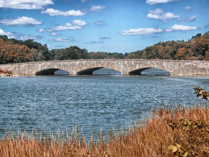 Keywords: darien connecticut bridge stone landscape scenic fall autumn sky clouds forest trees river water nature outside country countryside