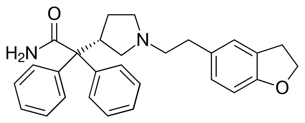 Keywords: Darifenacin.svg Skeletal formula of darifenacin Created using http //www acdlabs com/download/chemsk html ACD/ChemSketch 12 0 and Inkscape Optimized with vim Own work after cite journal Selvanayagam S Sridharb B Ravikumar K Darifenacin hydrobromide Acta Crystallographica E65 o1286 2009 http //journals iucr org/e/issues/2009/06/00/bt2946/bt2946 pdf 10 1107/S1600536809017085 2010-10-11 Fvasconcellos Darifenacin