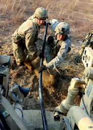 Keywords: 82nd airborne division 82ndairbornedivision 82nd airborne divarty 82ndairbornedivarty divarty dart 319th afar 319thafar gun devils gundevils howitzer hipshoot m119a3 redleg artillery airborne usarmy outdoor Airborne Artillerymen assigned to the 82nd Airborne Division Artillery ram the 155MM projectile into their M777A2 howitzer during an emergency fire mission, also known as a hip shoot during a Division Artillery Readiness Test on Fort Bragg N.C., March 2, 2016. The DART tests the battery in support of Global Response Battalion 1 on the their ability to conduct standard and non-standard fire missions such as the out of traverse, and emergency fire missions both day at night under stressful situations to ensure they can support any mission for GRB-1 within 18 hours of notification. (82nd ABN DIVARTY PAO, Capt. Joe Bush/ Released) Airborne Artillerymen assigned to the 82nd Airborne Division Artillery ram the 155MM projectile into their M777A2 howitzer during an emergency fire mission, also known as a hip shoot during a Division Artillery Readiness Test on Fort Bragg N.C., March 2, 2016. The DART tests the battery in support of Global Response Battalion 1 on the their ability to conduct standard and non-standard fire missions such as the out of traverse, and emergency fire missions both day at night under stressful situations to ensure they can support any mission for GRB-1 within 18 hours of notification. (82nd ABN DIVARTY PAO, Capt. Joe Bush/ Released) |