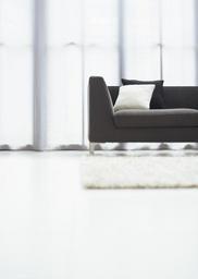 Keywords: sofa white couch floor wood wall curtain apartment pale parquet day brown minimalism bright contemporary renovation light living window furniture room design architecture interior relax home wooden style space comfort