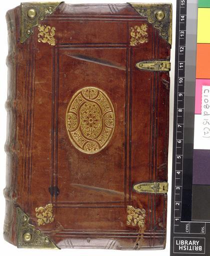 | Keywords: Das gulden Hauss Kleinod - Upper cover (c108d15).jpg Style Centrepiece; Caption Upper cover; Colour Brown; Edge Unspecified exhibition history Decorative Technique Tooled in blind Tooled in gold; Cover Material Calf With bosses clasps and cornerpices Shaped boards object history Text 1590; Leipzig; Unspecified object type Cc-zero place of creation Binding Germany place of discovery Unspecified British Library image http //www bl uk/catalogues/bookbindings/LargeImage aspx RecordId 020-000007912 ImageId ImageId 43561 Copyright BL Das gulden Hauss Kleinod Uploaded with GWToolset Das gulden Hauss Kleinod - Upper cover c108d15 http //www webarchive org uk/bldatasets/bindings/8464_4 jpg Bookbinding 16th-century bookbinding British Library Bookbindings |