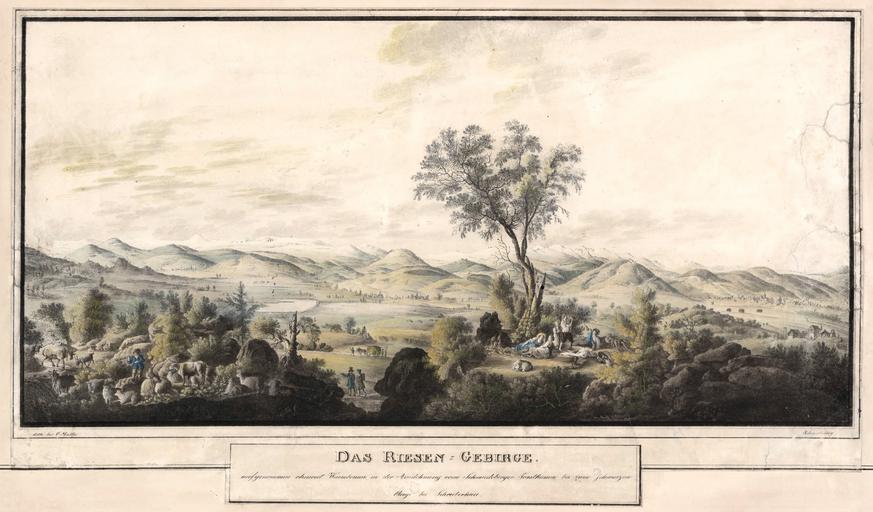 Keywords: Das Riesen-Gebirge. Aufgenommen ohnweit Wärmbrunn in der Ausdehnung von Schmiedebergen Forstkamm bis zum Schwarzen Berge bei Schreiberhau Carl Theodor Mattis.jpg Das Riesen-Gebirge Aufgenommen ohnweit Wärmbrunn in der Ausdehnung von Schmiedebergen Forstkamm bis zum Schwarzen Berge bei Schreiberhau von Carl Theodor Mattis 270 x 556 mm http //www sbc org pl/dlibra/docmetadata id 44553 from dirids 1 ver_id lp 59 QI 1815 Creator Carl Mattis PD-art-100 Karkonosze in Poland Carl Mattis Krkonoše in art Graphiksammlung Haselbach