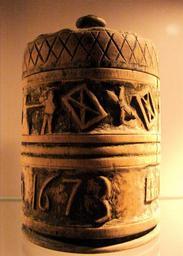 Keywords: Dåse (Telemark Museum).JPG Drejet trædåse med låg dreia ask med lok fra Fabritius' Samling Telemark Museum own 2013-08 Orf3us Telemark Museum