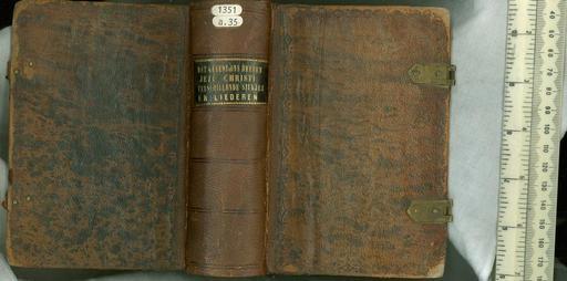 Keywords: Dat Ghebedt ons Heere Jesu Christi ... op een nieu in Druc uytgegheven, door eenen Liefhebber der Waerheyt C-laes- G-anglofs-. Een nieu Geestelijck Liedboecxken, etc.--4 texts bound in one v - Upper and lower cover and spine (1351a35).jpg Style Frame Floral; Caption Upper and lower cover and spine; Colour Brown; Edge Sprinkled blue exhibition history Decorative Technique Tooled in blind; Cover Material Sheep Red acquisitions stamp oval 5Apr88 Rebacked leather may be sheep Remnants of 2 pairs of metal clasps catching on to upper cover May be 18c object history Text 1633; Groningen; Unspecified object type Cc-zero place of creation Binding Netherlands place of discovery Unspecified British Library image http //www bl uk/catalogues/bookbindings/LargeImage aspx RecordId 020-000017787 ImageId ImageId 56722 Copyright BL Dat Ghebedt ons Heere Jesu Christi op een nieu in Druc uytgegheven door eenen Liefhebber der Waerheyt Claes Ganglofs Een nieu Geestelijck Liedboecxken etc 4 texts bound in one volume Uploaded with GWToolset Dat Ghebedt ons Heere Jesu Christi op een nieu in Druc uytgegheven door eenen Liefhebber der Waerheyt Claes Ganglofs Een nieu Geestelijck Liedboecxken etc 4 texts bound in one v - Upper and lower cover and spine 1351a35 http //www webarchive org uk/bldatasets/bindings/1351a35 jpg Bookbinding 17th-century bookbinding British Library Bookbindings