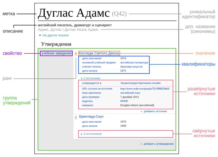 | Keywords: Datamodel in Wikidata ru.svg en Graphic representing the datamodel in Wikidata with a statement group and opened references ru Схематичное п едставление используемой в Викиданных модели данных с показом г уппы утве ждений и азве нутых ссылок на источники 2016-06-21 localization based on File Datamodel in Wikidata svg Charlie Kritschmar WMDE Kaganer other versions Datamodel in Wikidata cc-zero Graphics Wikidata information materials Wikidata Wikidata visualizations | ||||