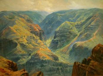 Keywords: David Howard Hitchcock - 'Waimea Canyon, Kauai', oil on canvas, 1909, Hawaii State Art Museum.JPG en Waimea Canyon Kauai by David Howard Hitchcock oil on canvas 1909 30 x 40 inches Hawaii State Art Museum own Creator David Howard Hitchcock 1909 PD-old-auto 1943 DEFAULTSORT Hitchcock Hawaii in paintings by D Howard Hitchcock Waimea Canyon Paintings in the Hawaii State Art Museum |