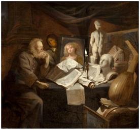| Keywords: David Rijckaert III - Old man with a vanitas still life.tiff en David Rijckaert III Old man with a vanitas still life oil on canvas 72 x 78 cm museum Bredius The Hague <br>All of the traditional attributes of a vanitas still life are present The old man focuses his attention on a picture of 'Youth' the depiction of ‹ ‹a boy's face that another young man is placing on the table century 17 http //museumbredius nl/product/rijckaert-iii-david-oude-man-bij-een-vanitas-stilleven/ Creator David Rijckaert III PD-old-100 PD-old-100 David Rijckaert III Paintings of Vanitas |
