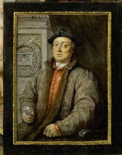 | Keywords: David Teniers II - (detail) Portrait of an unknown man by Jan van Scorel.jpg Artwork Creator David Teniers d J After langSwitch Mit einem Selbstbildnis des Künstlers rechts neben dem Erzherzog stehend The Archduke is shown centre left; standing holding his hat to the right is a self-portrait of his court painter David Teniers II 1653 oil on canvas cm 70 9 87 6 Private collection United States accession number object history Vitzay Collection thence to Graf Anton von Apponyi;<br/>Ukkermann Vienna 15 February 1818 part II lot 9 where purchased for 1 200 florins by Samuel Graf von Festetits;<br/>sale Artaria Vienna April-May 1859 purchased before the sale by Baron Anselm von Rothschild for 550 florins <br/>Collection Rothschild inv no AR856 <br/> 1999 07 08 langSwitch sold at Christie's London Verkauf mit der Sammlung Baron von Rothschild bei Christie's London sale 6179 lot 224 exhibition history Vienna Gemäldegalerie des Kunsthistorischen Museums no 9008 1948 - 1999 credit line DAVID TENIERS FEC/1653 ~ lower right signature and date and TIMORE DOMINI http //web archive org/web/20080409062346/http //www wink at/ausst_36_rothschild2 html wink at Sammlung Rothschild <br/> christies online 1480069 http //en gallerix ru/album/KHM/pic/glrx-542837897 GalleriX David Teniers II - Archduke Leopold Wilhelm and the artist in the archducal picture gallery in Brussels 1653 jpg PD-old-100-1923 DEFAULTSORT Teniers David 2; The archduke Leopold Wilhelm of Austria in art galleries 1653 private collection Gallery paintings by David Teniers the Younger The archduke Leopold Wilhelm of Austria in art galleries priv coll US Unidentified paintings Works after Jan van Scorel Male fur clothing in art Fur fashion in 1653 |