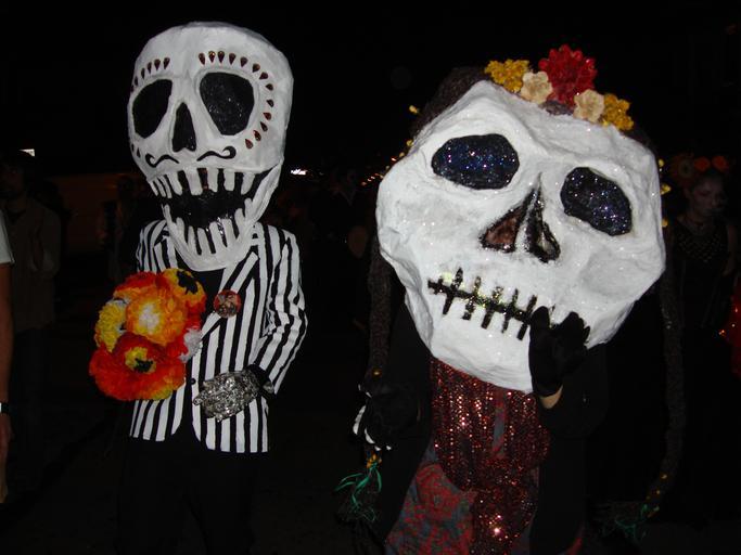 View Original:Day of the Dead (Dia de los Muertos) procession in San Francisco, two people with paper mache skull masks, 2009.JPG (2592x1944)