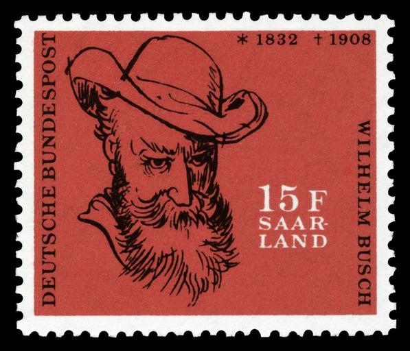 | Keywords: DBPSL 1958 430 Wilhelm Busch.jpg  / Briefmarkenbeschreibung Gedenkmarke zum 50 Todestag von Wilhelm Busch 1832-1908 Max und Moritz stamp for 50 years of death of Wilhelm Busch 1832-1908 Max and Moritz Graphics by Michel und Kieser Ausgabepreis 15 Saar-Franken First Day of Issue / Erstausgabetag 09 Januar 1958 Michel-Katalog-Nr 430 Saarland scanned by NobbiP 2008-09 drawing Creator Wilhelm Busch design H Michel und G Kieser 1908 PD-ineligible <gallery> Image DBP 50 Todestag Wilhelm Busch 10 Pfennig 1958 jpg Image DBP 50 Todestag Wilhelm Busch 20 Pfennig 1958 jpg Image DBPSL 1958 429 Wilhelm Busch jpg Saarland Ausgabe </gallery> Philately Max und Moritz Nennwert 15 Saar-Franken 1958-01-09 Michel und Kieser 1 998 791 Offsetdruck 430 Saarland 1958 Deutsche Bundespost Saarland stamps 430 Wilhelm Busch on stamps Drawings on stamps of Germany Michel + Kieser Anniversaries on stamps of Germany death German stamps review keep |