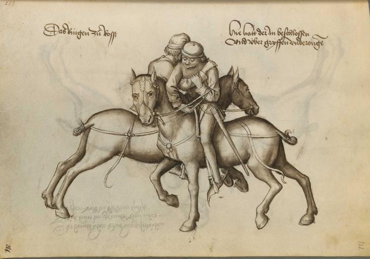 Keywords: De Fechtbuch Talhoffer 259.jpg Das Ringen zu Rossz “ Hie hatt der In beschlossen und uber gyryffen underougen 258 260