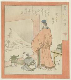 | Keywords: De generaal Kômei-Rijksmuseum RP-P-1999-239.jpeg accession number RP-P-1999-239 Totoya Hokkei; Totoya Hokkei died 1850; Renjitsuan Umekazu credit line nl K'ung Ming Kômei 181-234 eenChinese generaal kijkt door een venster naar een sneeuwlandschap Naast hem zit een jongetje die met een waaier het vuur aanwakkert in de stoof voor de thee Met één gedicht Label Line mentioned on object Totoya Hokkei 1790 - 1850 ca 1821 kleurenhoutsnede; blinddruk; lijnblok in zwart met kleurblokken; metaalpigmenten Collection prenten; Japan collectie blad Height mm 206 blad Width mm 183 exhibition history Institution Rijksmuseum paper object history Acquisition 1999 object type prent PD-US PD-old Data and photography rights All data and all images made available through the API are either in the public domain or are subject to a CC0 license https //www rijksmuseum nl/en/api/terms-and-conditions-of-use cc-zero place of creation Japan Forrer 284; Goslings 320 http //www rijksmuseum nl/collectie/RP-P-1999-239 http //hdl handle net/10934/RM0001 COLLECT 359171 handle De generaal Kômei Uploaded with GWToolset Rijksmuseum RP-P-1999-239 http //www rijksmuseum nl/media/assets/RP-P-1999-239 Images uploaded by Fæ Images from the Rijksmuseum Japanese 19th-century prints in the Rijksmuseum Amsterdam |