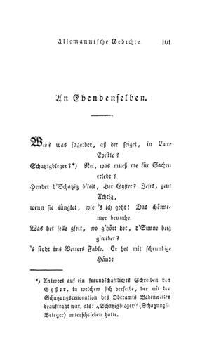 Keywords: DE Hebel Werke 1834 2 101.png 2 Allemannische und hochdeutsche Gedichte 1834 100 102