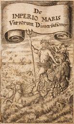 Keywords: De-imperio-maris-variorum-dissertationes-1663 MG 0276.tif Neptune with trident riding two horses at sea Frontispice with title De imperio maris variorum dissertationes on a banner PD-Art-100 D-Vorm Peace Palace Library collection De imperio maris variorum dissertationes nunc primum junctim editae / cum praefatione Joach Hagemeieri Publisher Francofurti ad Moenum Annotation Added half-title engr Rogge H Grotii operum descriptio bibliographica Nr 6 Contains I Julius Pacius De dominio Maris Hadriatici disceptatio inter Regem Hispaniarum ob Regnum Neapolitanum et Rempublicam Venetam - II Hugo de Groot Mare liberum - III Jac Gothofredus De dominio maris ad 1 9 Digest de lege Rhodia de jactu hypomnema - IV Martin Schoock Imperium maritimum Institution Peace Palace Library Uploaded with GWToolset De-imperio-maris-variorum-dissertationes-1663_MG_0276 http //www peacepalacelibrary nl/images/wikimedia/20-feb/TMD-548-1_MG_0276 tif Prints from the Peace Palace Library Images from the Peace Palace Library Books by Hugo Grotius Books from Germany Neptunus deus 1663 books Iacobus Gothofredus |