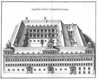 Keywords: De Merian Frankoniae 100.jpg 099 101 Engravings of Topographia Franconiae Nuremberg in the 1650s Town Hall of Nuremberg