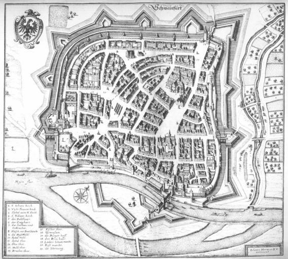 Keywords: De Merian Frankoniae 128.jpg 127 129 Engravings of Topographia Franconiae Schweinfurt Bridges over the Main Schweinfurt Covered bridges in Bavaria Bridges in Schweinfurt Coats of arms of Schweinfurt Main in art