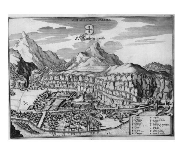Keywords: De Merian Helvetiae, Rhaetiae et Valesiae 176.png 175 177 Saint-Maurice Switzerland