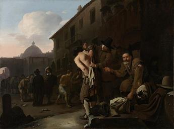 Keywords: De naakten kleden Rijksmuseum SK-A-2847.jpeg accession number SK-A-2847 Creator Michael Sweerts credit line nl De naakten kleden Op een plein in een Italiaanse stad wordt aan behoeftigen kleding uitgedeeld Een jongen met een hoed helpt een andere man met aankleden Onderdeel van een reeks van voorstellingen van de zeven werken van barmhartigheid zie SK-A-2845/48 ; Michael Sweerts 1618 “1664 olieverf op doek ca 1646 “1649 drager Height cm 74 drager Width cm 99 exhibition history 2004-2008 Het Rijksmuseum aan de Schelde Antwerpen Institution Rijksmuseum object history Acquisition 1920-07-01 object type PD-US PD-old-100 Data and photography rights All data and all images made available through the API are either in the public domain or are subject to a CC0 license https //www rijksmuseum nl/en/api/terms-and-conditions-of-use cc-zero place of creation http //www rijksmuseum nl/collectie/SK-A-2847 De naakten kleden Q17331010 Uploaded with GWToolset De naakten kleden Rijksmuseum SK-A-2847 http //www rijksmuseum nl/media/assets/SK-A-2847 Images uploaded by Fæ Images from the Rijksmuseum Flemish Baroque paintings in the Rijksmuseum Amsterdam Michael Sweerts |