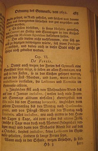 | Keywords: De Ordnung des Gymnasii 485.jpg  De_Ordnung_des_Gymnasii_ jpg 484 486 This is a scan of the historical document with the title <br/> Ordnung des Gymnasii aus/ From Sammlung Hamburgischer Gesetze und Verfassungen Der Achte Theil Photo from original book 1770 Klefeker Johann Ed PD-old-100 De Ordnung des Gymnasii |