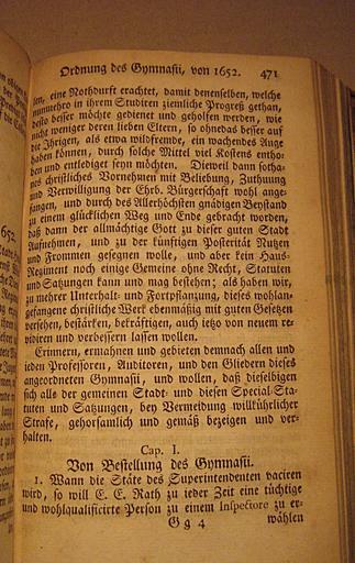 | Keywords: De Ordnung des Gymnasii 471.jpg De_Ordnung_des_Gymnasii_ jpg 470 472 This is a scan of the historical document with the title <br/> Ordnung des Gymnasii aus/ From Sammlung Hamburgischer Gesetze und Verfassungen Der Achte Theil Photo from original book 1770 Klefeker Johann Ed PD-old-100 De Ordnung des Gymnasii |
