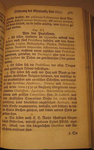 | Keywords: De Ordnung des Gymnasii 475.jpg  De_Ordnung_des_Gymnasii_ jpg 474 476 This is a scan of the historical document with the title <br/> Ordnung des Gymnasii aus/ From Sammlung Hamburgischer Gesetze und Verfassungen Der Achte Theil Photo from original book 1770 Klefeker Johann Ed PD-old-100 De Ordnung des Gymnasii |