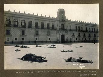 | Keywords: Dead outside National Palace during one of the outbreaks, Mexico City.jpg Creator Ramos Manuel Date ca 1913 Part Of Album Mexican Revolution Page Number p 02 Place Mexico City Mexico File ag1996_1039_02_opt tif Rights Please cite Southern Methodist University Central University Libraries DeGolyer Library when using this file A high-quality version of this file may be obtained for a fee by contacting degolyer smu edu For more information see <a href http //digitalcollections smu edu/u /mex 102 rel nofollow >digitalcollections smu edu/u /mex 102</a> View Mexico Photographs Manuscripts and Imprints at <a href http //digitalcollections smu edu/all/cul/mex/ rel nofollow >digitalcollections smu edu/all/cul/mex/</a> Flickr http //flickr com/photos/41131493 N06/3790109812 Dead outside National Palace during one of the outbreaks Mexico City 1913-00-01 00 00 00 Manuel Ramos 1874 “1945 published by SMU Central University Libraries User Flickr upload bot/upload-pd 09 37 20 July 2013 UTC Mexsim PD-Mexico PD-Old Mexican Revolution Photographs from SMU Central University Libraries |