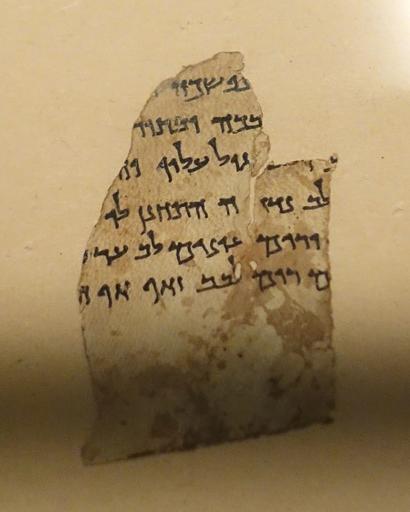 MAKE A MEME View Large Image Dead Sea Scroll fragment with Hebrew text, Wadi Qumran, Cave IV, 50 BC to 50 AD, parchment and ink - Oriental Institute Museum, University of Chicago - DSC07748.JPG en Exhibit in the Oriental Institute Museum University of Chicago Chicago ...