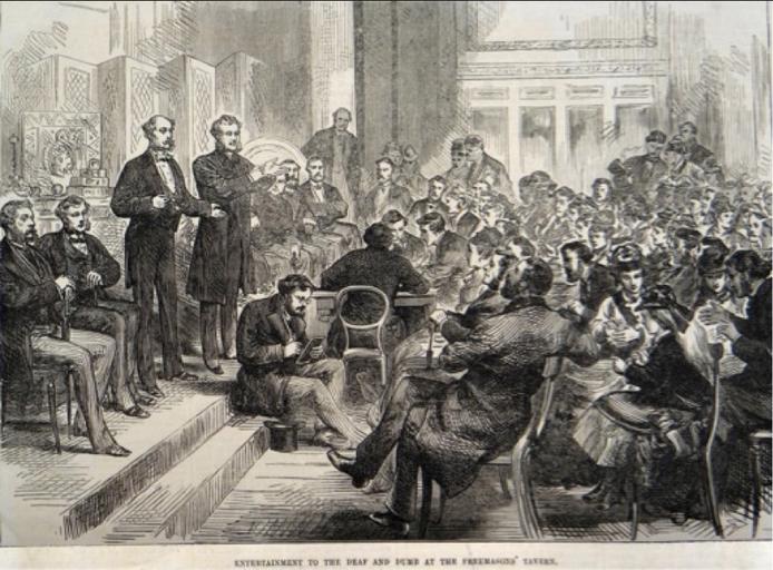 | Keywords: Deaf and Dumb event at Freemason's Tavern.jpg Freemason's Tavern London with sign language for deaf and dumb people published in the Illustrated London News The hall was designed by en Thomas Sandby 1875-01-23 Illustrated London News anonymous other versions PD-old-70-1923 London in the 1870s Sign language Freemasons' Tavern Thomas Sandby |