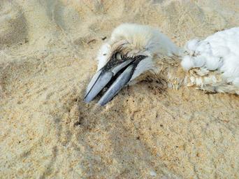Keywords: death dead bird beach environment dead bird nature sand pollution danger ecology stork