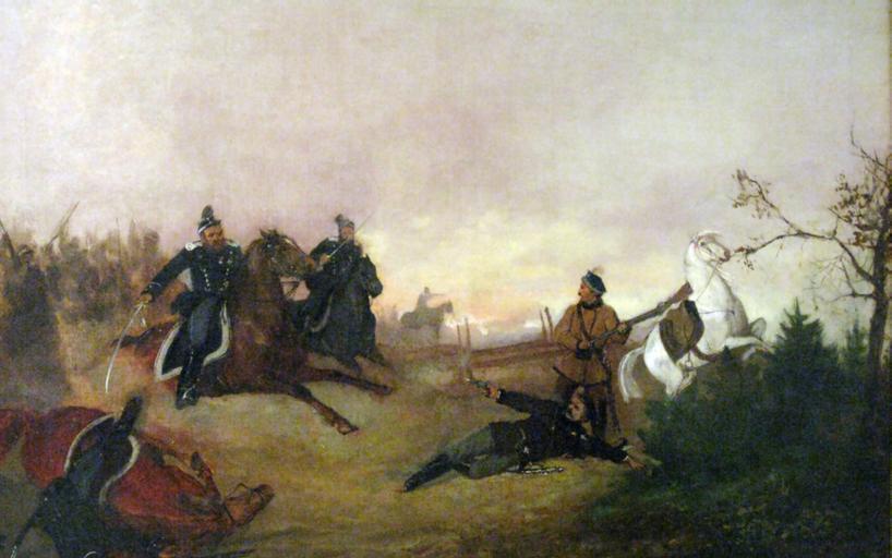 | Keywords: Death of Dionizy Czachowski during battle of Wierzchowiska in 1863.PNG Artwork en Death of Dionizy Czachowski during battle of Wierzchowiska in 1863 pl Śmierć Dionizego Czachowskiego w bitwie pod Wierzchowiskami w 1863 oil canvas Warsaw Polish Army Museum own User Mathiasrex Maciej Szczepańczyk < 1924 Creator Antoni Piotrowski Other versions PD-old-auto 1924 Antoni Piotrowski Paintings in the Polish Army Museum Dionizy Czachowski January Uprising January Uprising in history paintings | ||||