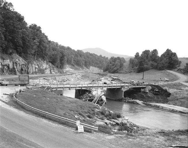 | Keywords: richmond va usa hurricane agnes hurricaneagnes virginia flood flooding natural disaster richmond va usa naturaldisasterrichmondvausa blackandwhite monochrome outdoor black and white Construction workers begin reparis to the bridge at the intersection of Rt. 617 and Rt. 623 in Nelson County. Debris, even trees, are stacked against the piers. Located two miles east of Woods Mill. No. 72-1364, Virginia Governor's Negative Collection, Library of Virginia. Construction workers begin reparis to the bridge at the intersection of Rt. 617 and Rt. 623 in Nelson County. Debris, even trees, are stacked against the piers. Located two miles east of Woods Mill. No. 72-1364, Virginia Governor's Negative Collection, Library of Virginia. |