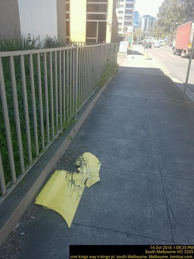 I wish you well. I refer to the attached photo depicting the debris a corner of Kings Way and Kings Pl, South Melbourne VIC Australia.