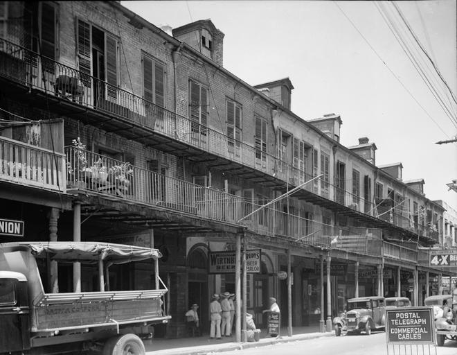 | Keywords: Decatur Street French Quarter 1936 Ursulines Row Houses Street Scene.jpg New Orleans Street view Decatur Street French Quarter June 1936 FACADES ON DECATUR STREET Nos 1107-33 Marked 'A' on Plot Plan - Ursuline's Row Houses 1107-1133 Decatur Street Commercial Buildings New Orleans Note Row of commercial / residential buildings constructed on land on what had been the Decatur Street side of the Ursuline Convent grounds Historic American Buildings Survey photo by Richard Koch via http //hdl loc gov/loc pnp/hhh la0054/photos 072834p ; TIF cropped contrast slightly adjusted and image converted to jpg before uploading to Wikimedia Commons 1936-06 Richard Koch PD-USGov Unmodified TIF File Decatur Street French Quarter 1936 Ursulines Row Houses Street Scene tif 1936 in New Orleans Built in New Orleans in 1830 Decatur Street French Quarter Black and white photographs of the French Quarter Row houses in New Orleans Shops in the French Quarter June 1936 in the United States Black and white photographs of houses |