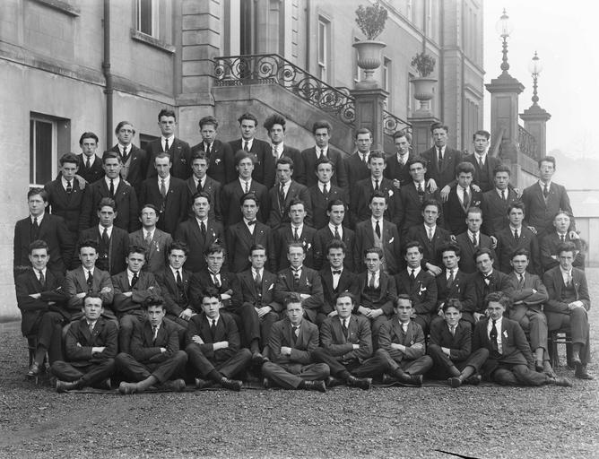 | Keywords: mallow students de la salle college delasallecollege de la salle delasalle park road parkroad ireland munster men fáinne pioneer pins pioneerpins total abstinence totalabstinence suits ties december 1923 1920s twenties poole collection poolecollection glass negative glassnegative a.h. poole ahpoole arthur henri poole arthurhenripoole waterford national library of ireland nationallibraryofireland blackandwhite monochrome team sport outdoor sport black and white A group of students from Mallow pictured at De La Salle College, Waterford. Many of the young Corkmen are wearing the Fáinne rings and/or Pioneer badges on their lapels, showing that they speak Irish (enthusiastically) and abstain from alcohol. Date: 2 December 1923 NLI Ref.: P_WP_3140 A group of students from Mallow pictured at De La Salle College, Waterford. Many of the young Corkmen are wearing the Fáinne rings and/or Pioneer badges on their lapels, showing that they speak Irish (enthusiastically) and abstain from alcohol. Date: 2 December 1923 NLI Ref.: P_WP_3140 |