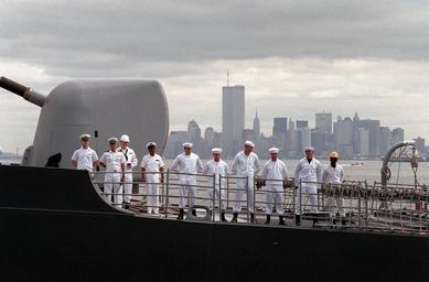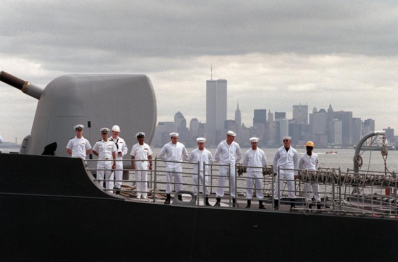 | Keywords: U. S. National Archives Item: Members of the deck force of the guided missile cruiser USS NORMANDY (CG-60) standby as the ship gets underway from Naval Station Staten Island for the 50th anniversary commemoration of the June 6th D-Day Invasion of Europe. In the background is the New York City skyline highlighted by the World Trade Center, 5/18/1994 Series: Combined Military Service Digital Photographic Files, 1982 - 2007 catalog.archives.gov/id/6490657 Camera Operator: Ed Bailey U. S. National Archives Item: Members of the deck force of the guided missile cruiser USS NORMANDY (CG-60) standby as the ship gets underway from Naval Station Staten Island for the 50th anniversary commemoration of the June 6th D-Day Invasion of Europe. In the background is the New York City skyline highlighted by the World Trade Center, 5/18/1994 Series: Combined Military Service Digital Photographic Files, 1982 - 2007 catalog.archives.gov/id/6490657 Camera Operator: Ed Bailey |