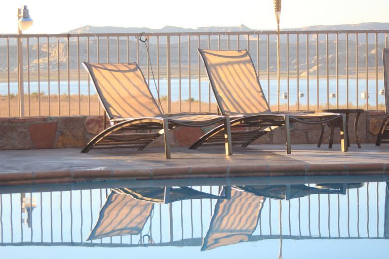 Keywords: deckchairs mirror image leisure reflection pool