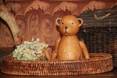 Keywords: deco decoration still still life sit furniture bear setup basket hydrangea hydrangea flower dekobaer wooden bear wood materials antique old historically flower flora leaves withered wallpaper