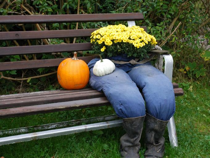 Keywords: deco garden autumn decoration funny pumpkin autumn jewelery flowers garden bench decorative