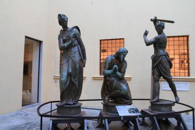 | Keywords: Decollazione del battista (Vincenzo Danti, 1569-1570), museo del opera de Sta Maria Fiori,Firenze.JPG fr Sculpture de bronze composée de 3 statues avec au centre saint-Jean Baptiste agenouillé prêt à recevoir le coup mortel de la lame de Salomé Elle fut montée en 1571 près de la porte Sud du Baptistère de saint-Marie aux fleurs à Florence Elle se trouve actuellement dans le musée de l'opera de sainte Marie aux Fleurs oeuvre personnelle photo Vincenzo Danti 1569 1570 2011-04-30 fichier personnel Cc-zero Beheading of John the Baptist by Vincenzo Danti |