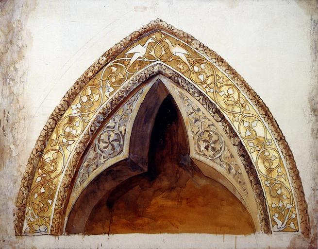| Keywords: Decorated cusped gothic window.jpg Edinburgh Lecture diagram Decorated cusped gothic window assisted by Euphemia Chalmers Ruskin pencil charcoal ink wash oil and gold paint; paper mounted on linen 151 5 x 183 cm From Ruskin Turner and the pre-Raphaelites by Robert Hewison 2000 http //www thecityreview com/ruskin html 1853 creator John Ruskin PD-old-100 John Ruskin Paintings by John Everett Millais 1853 paintings | ||||