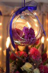 Keywords: decoration flowers decorative the scenery flower purple flower hanging flower plant pink glass bauble the backlight glossy blue ribbon candles the flame bouquet of flowers wedding composition the ceremony love beauty