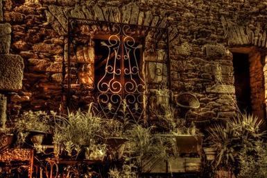 Keywords: decoration lane night old pavement brick former plant light window facade