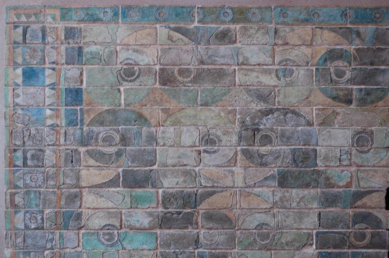 Keywords: Decorative motives2 griffins frieze Louvre Sb3323.jpg Decorative patterns detail from the griffins' frieze in Darius' palace at Susa Glazed siliceous bricks ca 510 BC Motifs décoratifs détail de la frise des griffons du palais de Darius à Suse Briques silicieuses à glaçure vers 510 av J -C Museum Louvre Department of Oriental Antiquities Sully ground floor room 12a object history credit line Excavated by Roland de Mecquenem 1908 “1913 accession number Louvre number 3322 Louvre number 3323 Jastrow 2005 other versions <gallery>Image Decorative motives griffins frieze Louvre Sb3322 jpg Other patterns</gallery> Friezes in Paris Spirals in art Near Eastern Antiquities in the Louvre - Room 12a Bricks from Darius' palace at Susa in the Louvre museum Siliceous bricks |