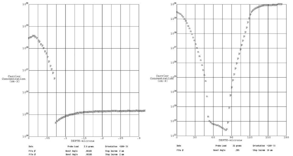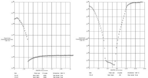 Keywords: Deep and Shallow SR profiles portrait.jpg en The shallow profile on the left the deep profile on the right Carrier concentration is plotted against depth Regions with a net electron concentration are denoted as n or n-type Regions with a net hole concentration are denoted as p Own Rogerprocessengineer 12/14/08 Check categories 2009 February 14 en wikipedia Spreading_Resistance_Profiling Microtechnology 4 Semiconductors Manufacture of electronics Analysis Microtechnology |